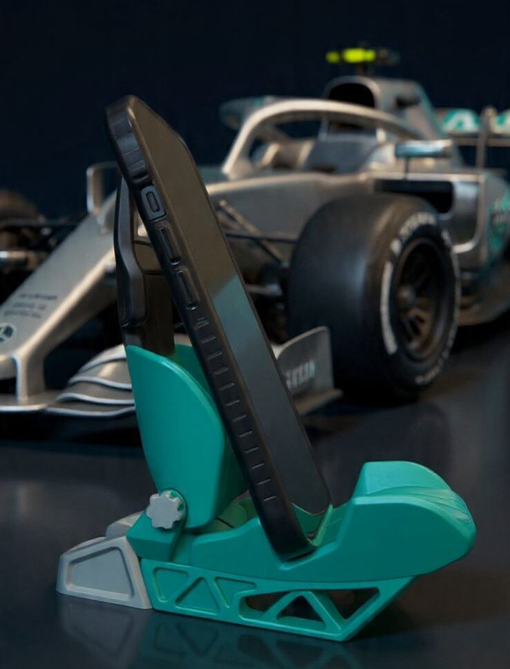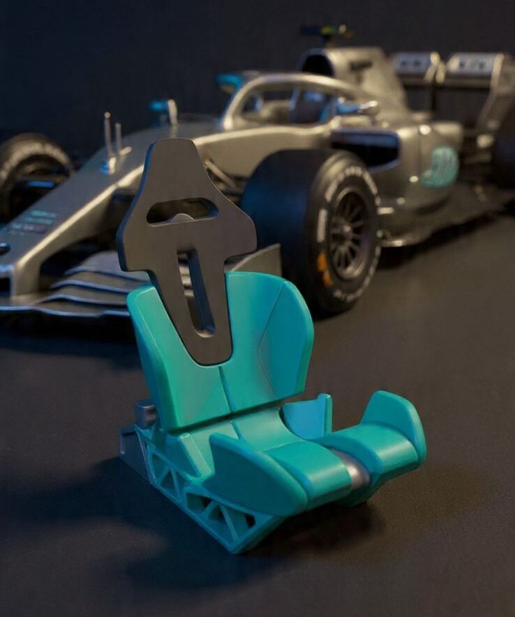 Inspired by the precision and passion of motorsport engineering, the Racer Seat Phone Stand brings the thrill of the racetrack to your desk. Expertly 3D printed, this sculpted stand mirrors the form of a high-performance racing seat — sleek, aerodynamic, and built for stability.